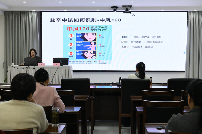 讲座中,宇辉主任以“尽早识别,立刻就医”为核心,用通俗易懂的语言解析专业知识。她首先通过数据对比,指出当前我国心脑血管疾病呈现“发病率高、复发率高、致残率高、死亡率高、经济负担高”的严峻现状,强调预防远胜于治疗,并特别提醒中老年群体警惕“晨起血压高峰”,建议定时监测血压。