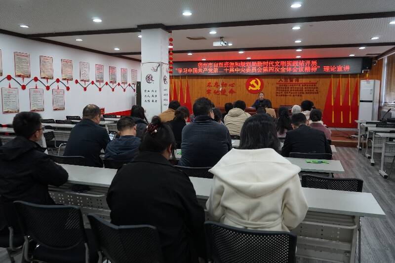 近日,市自然资源和规划审查中心党支部联合滨河社区新时代文明实践站组织辖区党员群众在社区理论宣讲室开展学习贯彻党的二十届四中全会精神理论宣讲活动。