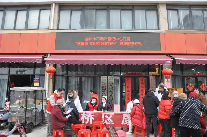活动现场,志愿者们传递时代能量开展公益义诊活动,为居民测量血压、血糖,发放健康手册,义务理发等活动,将健康服务送到居民身边。宿州市不动产登记中心党员志愿者们现场为居民讲解不动产登记、产权办理、过户流程、政策宣传等问题,耐心解答疑问,用服务传递温暖,把不动产登记便民服务送到居民家门口,用实际行动诠释新时代雷锋精神。